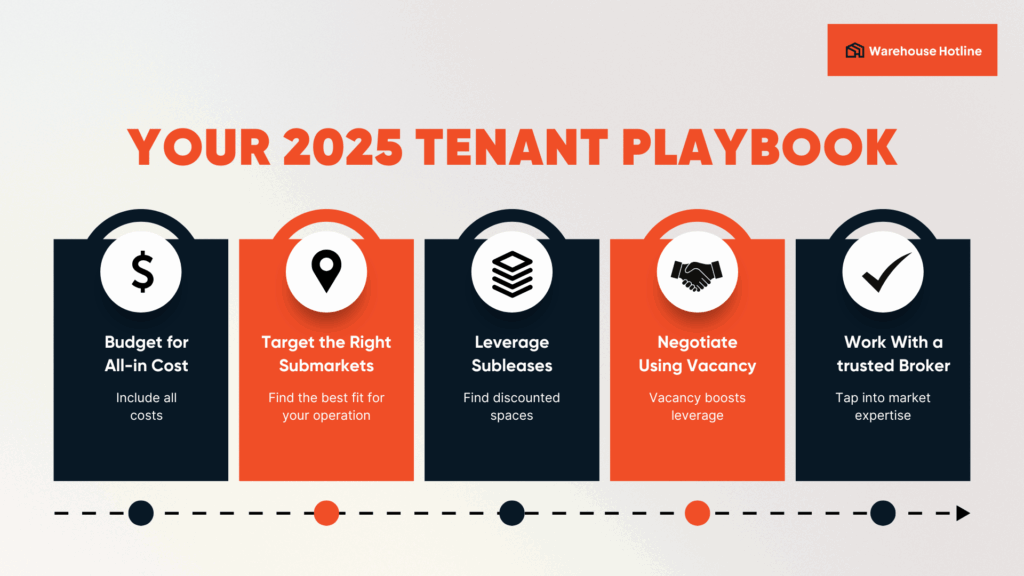 For tenants, the key is knowing not just the rent but the all-in cost of occupying industrial space. In 2025, here’s what you should expect: